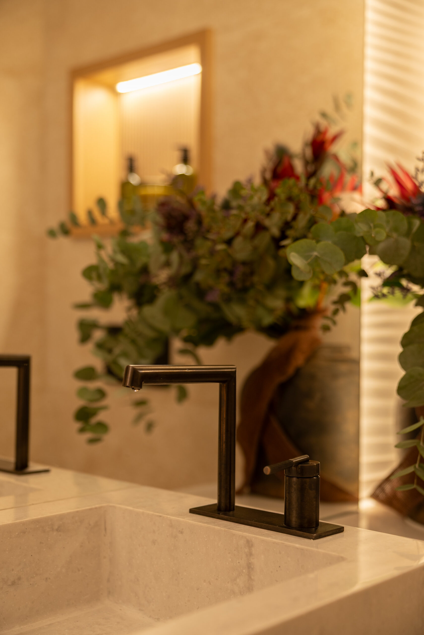 Vom offenen Wohnbereich bis zu den privaten Rückzugsorten wurde jedes Element der Wohnung unter einem gemeinsamen Leitgedanken gestaltet: durch Design ein wohnliches und zugleich ästhetisches Lebensgefühl zu vermitteln. Präzise Linien, raffinierte Oberflächen und eine sorgfältige Materialauswahl bilden ein stimmiges Ganzes, in dem jedes Detail zur Harmonie beiträgt. Die Balance zwischen modernen und behaglichen Details schafft ein Zuhause, das nicht nur durch stilvolle Ruhe überzeugt, sondern auch ganz auf die alltäglichen Bedürfnisse ausgelegt ist.