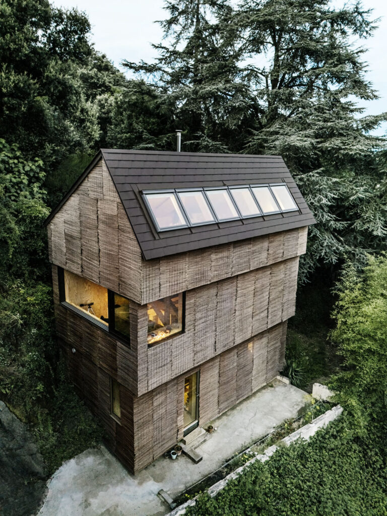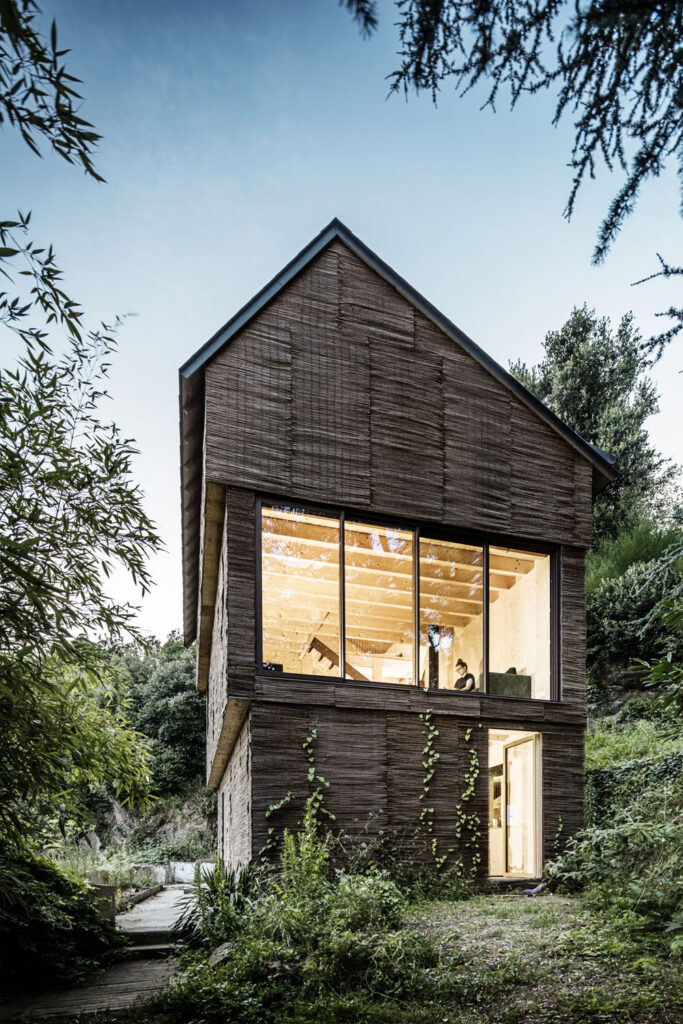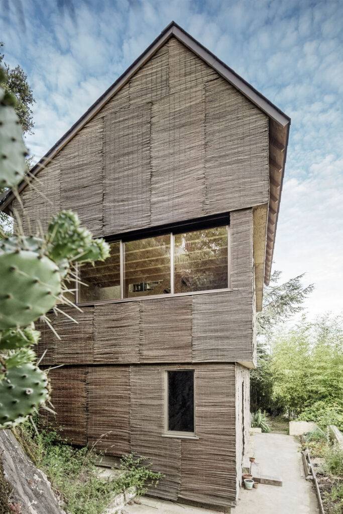 Die Architekten François Massin Castan bauten in Le Cellier ihr eigenes Haus, als Rückzugsort etwas abseits des städtischen Asphalts der Großstadt Nantes. Aus eher ungünstig erscheinenden Rahmenbedingungen formten sie ein Gebäude, das harmonischer kaum sein könnte und gleichzeitig nicht vermuten lässt, dass es die Summe vieler Einschränkungen ist. Die jungen Bauherren und Architekten hatten sich mit einem Grundstück anzufreunden, dessen Hauptteil eine steile und vermooste Felswand ist. Es liegt direkt an einem öden Park-and-Ride-Parkplatz der regionalen S-Bahnstrecke. Den Blicken der Pendler ist man damit täglich ausgesetzt. Zudem ist zwar die Loire in der Nähe, aber vom Grund aus leider nicht zu sehen. Weiters stand auf dem Grundstück ein kleines Haus, eine Art gemauerte Datscha oder gemauertes Gartenhaus mit verrostetem Gewächshaus. Ein vollständiger Abriss kam nicht infrage, da man damit das Baurecht verloren hätte. Sie mussten also revitalisieren und sich an die Grundfläche des Bestandes halten.