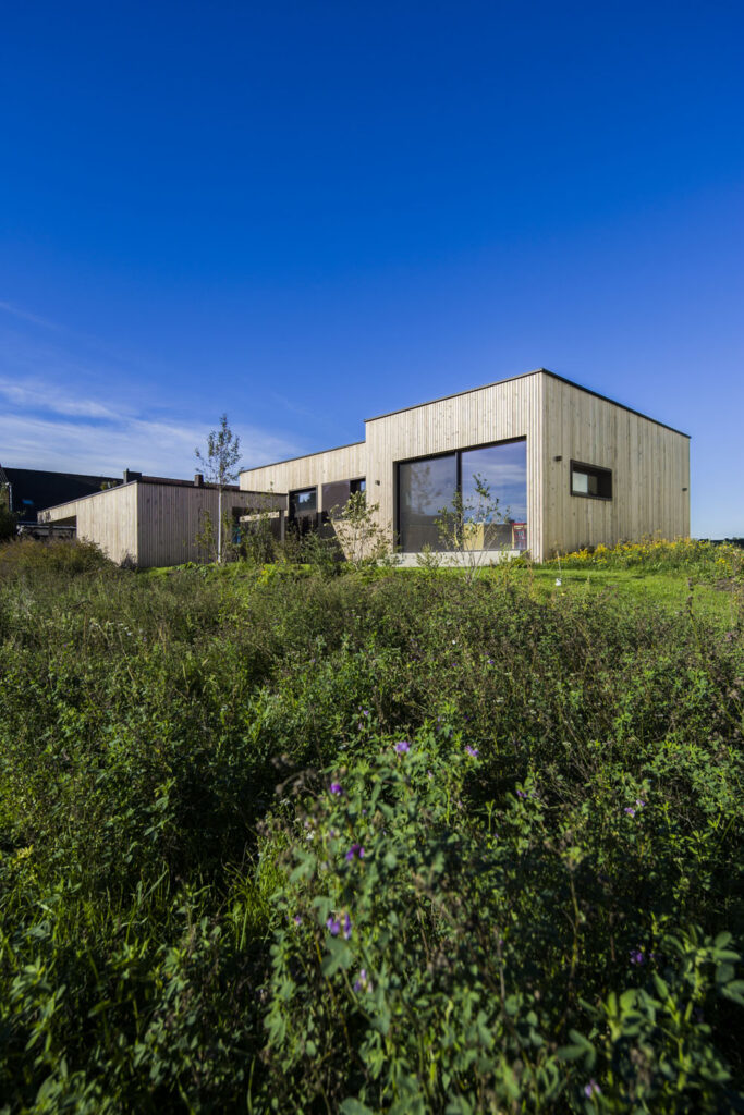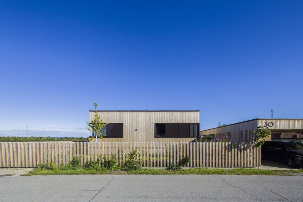 Das Gebäude befindet sich in Gerasdorf nördlich von Wien. Am Rande einer Einfamilienhaussiedlung, umgeben von weitläufigen Spargelfeldern im Norden und Osten. Im Zuge des Umbaus wurde die Garage im Osten entfernt und das Gebäude um einen Anbau im Norden erweitert. Zusätzlich wurde ein Nebengebäude mit Carport im Westen ergänzt. Jetzt eröffnet sich der weite Blick in die Felder und Licht strömt von Ost und West in die Wohnräume. Ein neuer Anbau im Norden schafft die ebenerdige Anbindung an den Garten und spendet gleichzeitig mehr Raumhöhe für die Wohnküche. Auf rund 143 Quadratmetern genießen die Bauherren ihr neues Wohnglück im alten Haus.