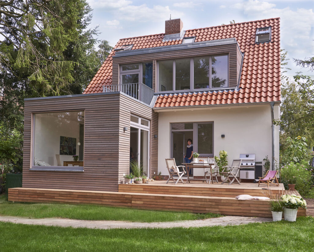 - Neues Wohnglück im alten SiedlerhausMehr Raum für eine vierköpfige Familie durch Anbau und Ausbau des Spitzbodens im sanierten Bestandsgebäude.